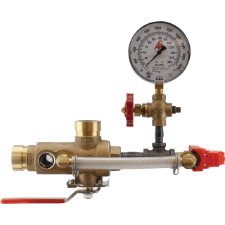 Introducing the 1-1/4" Test And Drain 5.6K Pressure Reducing Valve And Gauge GXG by AGF Manufacturing—a vital asset for your fire protection system that prioritizes safety and efficiency. This cutting-edge pressure reducing valve (PRV) and gauge combo ensures optimal pressure regulation, making it essential for the reliable operation of your hydraulic systems.