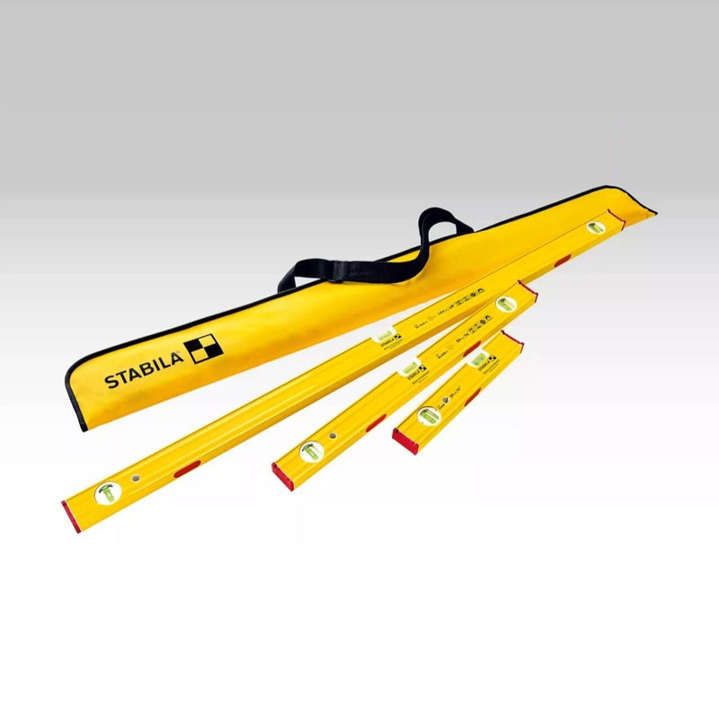 Three magnetic spirit levels in an attractive set: With the STABILA PRO SET 80 ASM in the popular lengths of 48″ (120 cm), 24″ (60 cm) and 12″ (30 cm) you have the perfect equipment for your projects. Thanks to their proven STABILA quality, the spirit levels are reliable helpers on the construction site. The technology of the vial installation guarantees lasting precision and a long service life. The spirit levels hold tight on metallic construction elements thanks to the particularly strong rare-earth magnets. The robust carrying case helps you transport and protect your tools. STABILA – always a good choice for true pros.