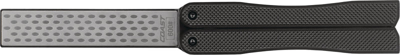 The SP425 is a folding, diamond grit blade sharpener that can hone, knives, scissors, axes, and other relevant tools. The SP425 is two sided with one side featuring a 400# diamond grit surface and the other featuring a 600# diamond grit surface. It also features a double folding handle that allows for compact storage of the sharpener without risk of damaging the grit. The SP425 Sharpener’s textured nylon handle helps maintain a secure grip as you sharpen your tool.