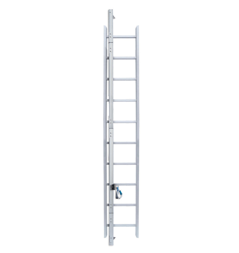 The Frontline Securail Pro Vertical fall arrest is a rigid lifeline to secure access to any structure or roof. Clamped on an existing roof access ladder, this rail system secures the end user much better than the regular safety hoops. Entirely composed of high grade aluminum it is for pylons, confined spaces and industrial halls. Undeformable stainless steel brackets connect the ladders to the structure.