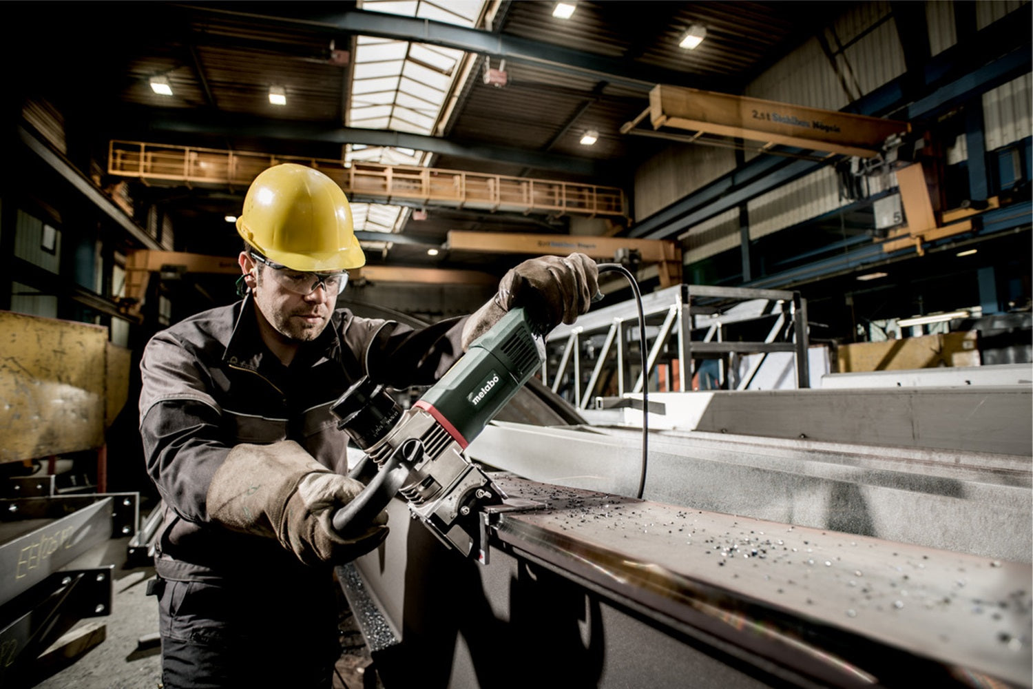 This metal beveling tool for chamfer heights up to 15 mm for weld seam preparation. It features a patented, tool free setting of the cutting depth in 0.1 In. steps, stop points for short setting times, and protection against unintentional adjustment of the cutting depth when working.