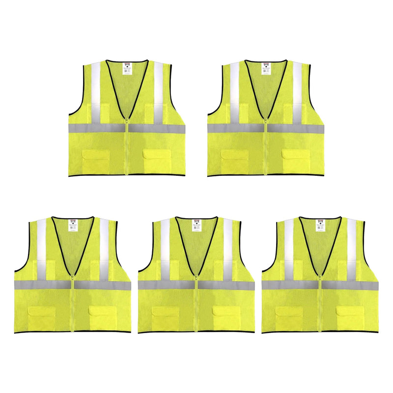 Safety Main 05EAMYZ Economy Vest, Class 2, All Mesh, Hi-Vis Yellow, Pack of 5
