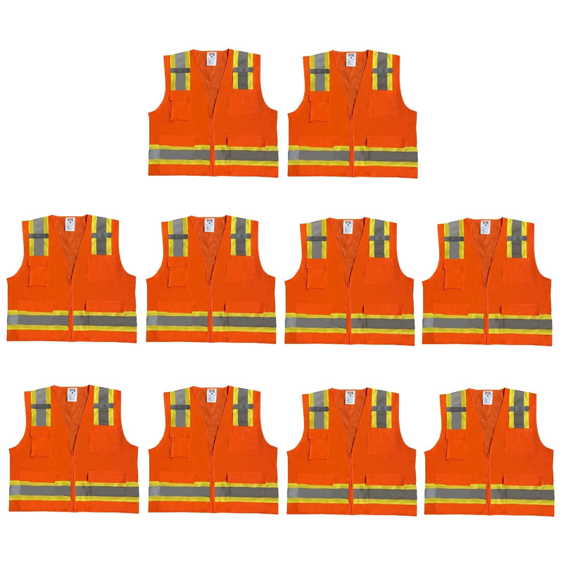 Safety Main 05TTSOZ Surveyor Vest, Class 2, Solid Front, Mesh Back, Hi-Vis Orange, Pack of 10